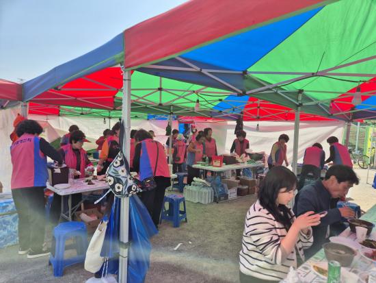 À̳¯ Á¤¹Ì¸é »ýȰ°³¼±È¸ ȸ¿øµéÀÌ Á¤¼º½º·´°Ô ÁغñÇÑ ÀÜÄ¡±¹¼ö, µÅÁö²®µ¥±â, °£Àç¹Ì¹«Ä§ µî ÇâÅä À½½ÄÀÌ ´õÇØÁö¸ç Çà»ç´Â ÇÑÃþ dz¼ºÇØÁ³°í, º¢²É°ú ÇÔ²² ´Ù¾çÇÑ ¸Ô°Å¸®´Â »óÃá°´µéÀÇ ÀÔ°ú ´«À» »ç·ÎÀâ¾Ò´Ù.