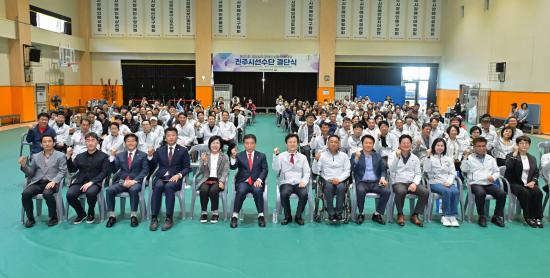 À̳¯ °á´Ü½Ä¿¡´Â ÁøÁֽà ¼±¼ö´ÜÀ» °Ý·ÁÇϱâ À§ÇØ ÁøÁÖ½Ã¿Í ÁøÁÖ½ÃÀÇȸ °ü°èÀÚ¸¦ ºñ·ÔÇØ Àå¾ÖÀδÜü¿Í ½Ã¼³ °ü°èÀÚ, Àå¾ÖÀÎüÀ°È¸ ÀÓ¿ø, °¡¸Í ´ÜüÀå µî 180¿© ¸íÀÌ Âü¼®ÇÑ °¡¿îµ¥ ÁøÁֽà ¼±¼ö´ÜÀÇ ¼±ÀüÀ» ±â¿øÇÏ°í °Ý·ÁÇß´Ù.