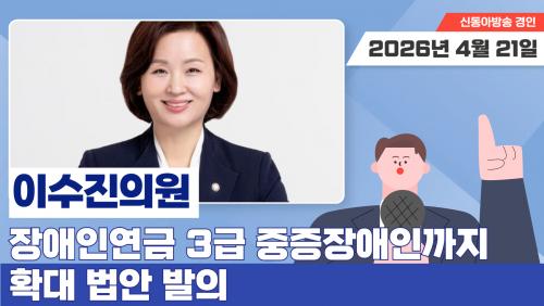 À̼öÁø ÀÇ¿ø(±¹È¸ º¸°Çº¹ÁöÀ§¿øÈ¸ °£»ç, ¼º³² Áß¿ø)Àº 4¿ù 20ÀÏ Àå¾ÖÀο¬±Ý ¼ö±Þ ´ë»óÀÚ¸¦ È®´ëÇÏ°í ½Åû ÀýÂ÷¸¦ °£¼ÒÈÇÏ´Â ¡¸Àå¾ÖÀο¬±Ý¹ý ÀϺΰ³Á¤¹ý·ü¾È¡¹À» ¹ßÀÇÇß½À´Ï´Ù.